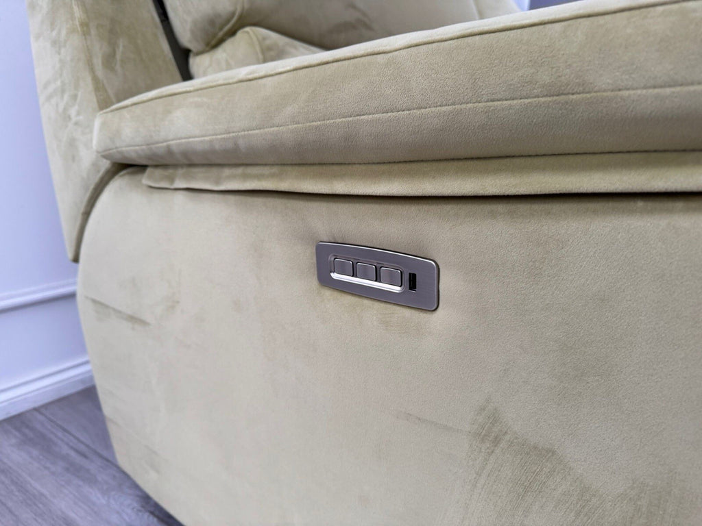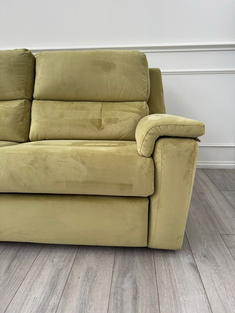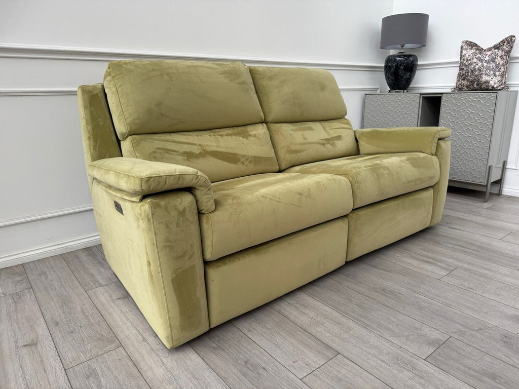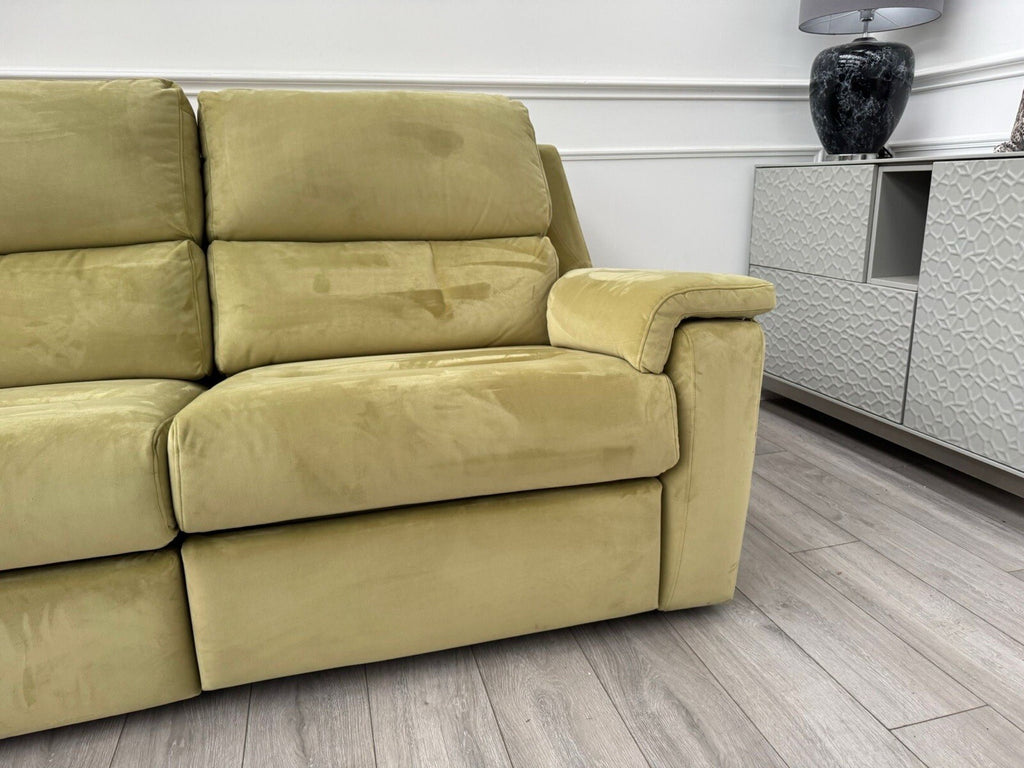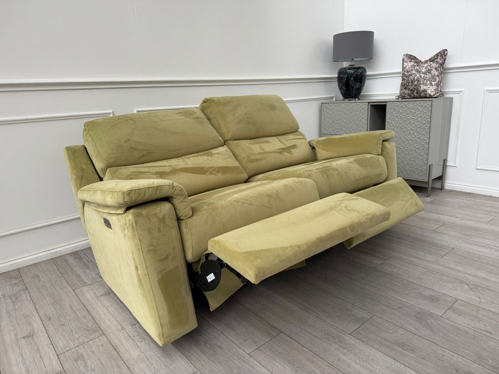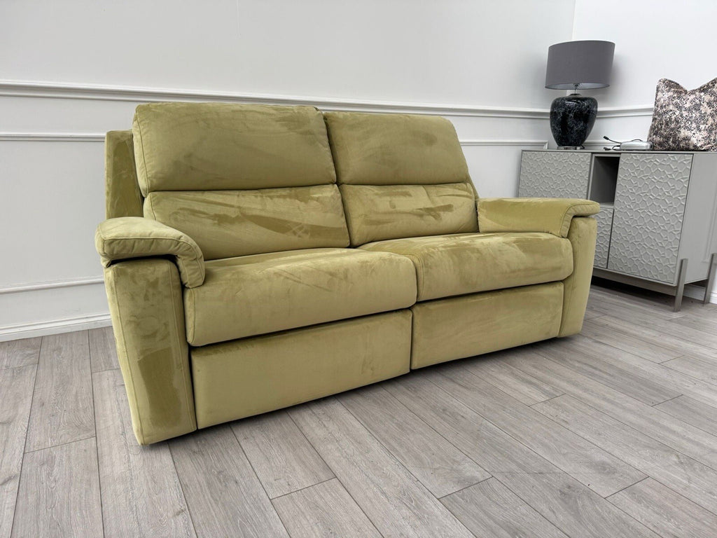 G Plan Thornbury 3 Seater Sofa Olive Velvet Power Recliner & Headrest & Lumbar