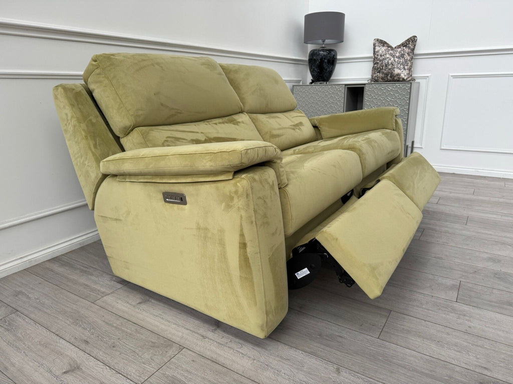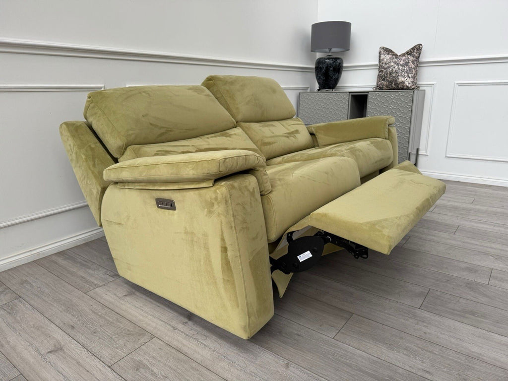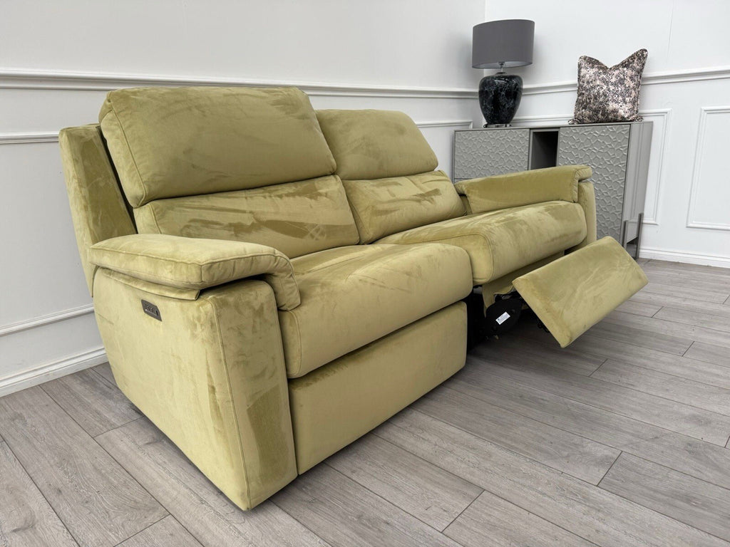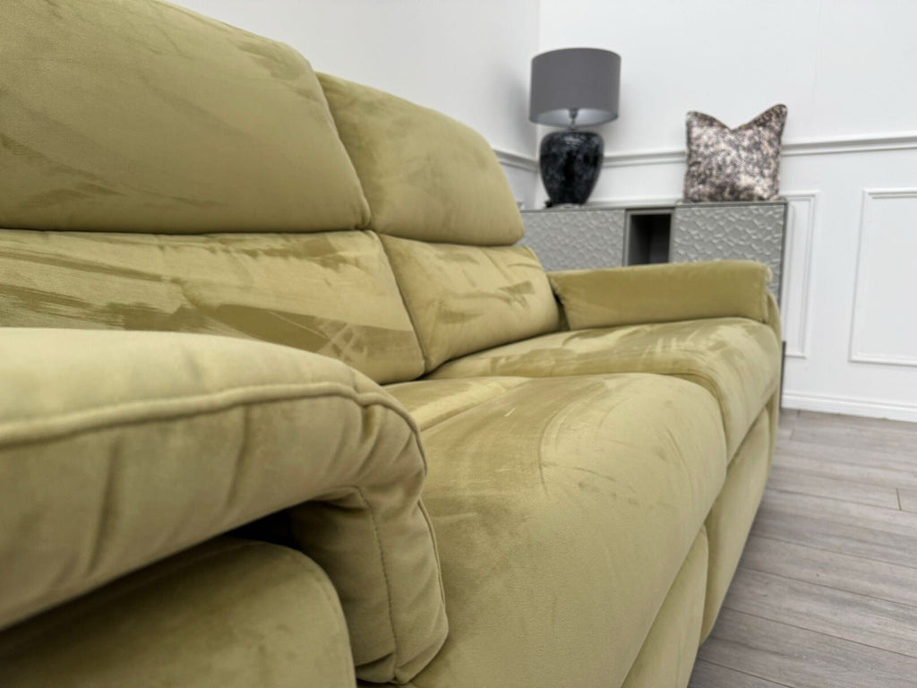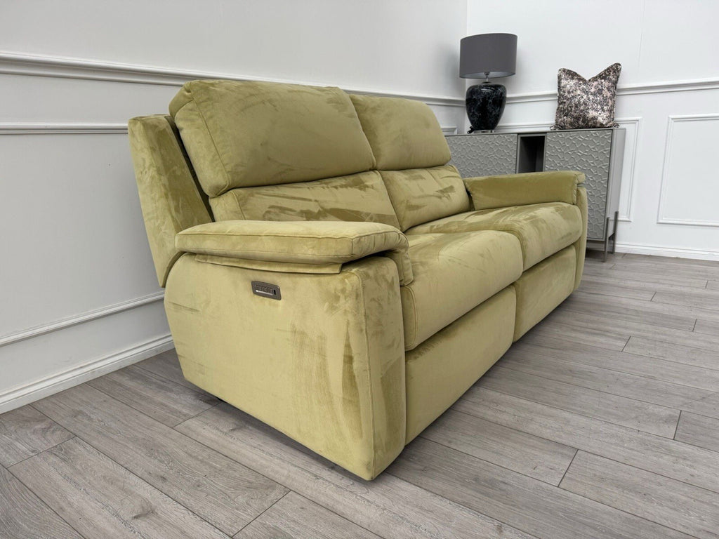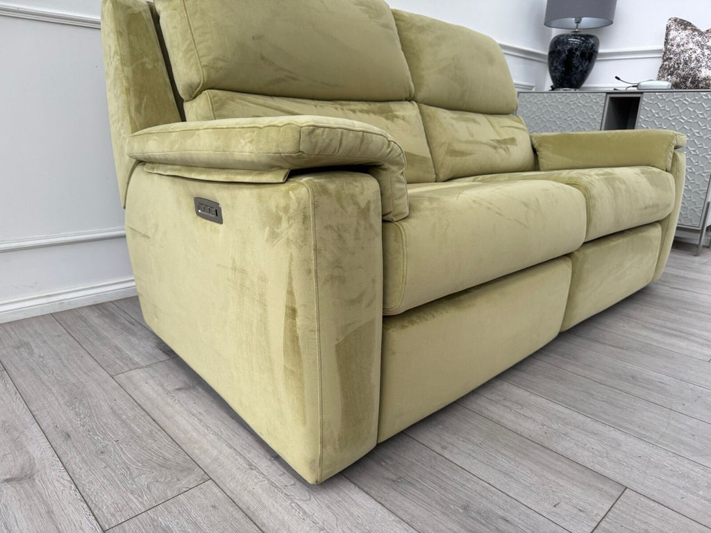 G Plan Thornbury 3 Seater Sofa Olive Velvet Power Recliner & Headrest & Lumbar