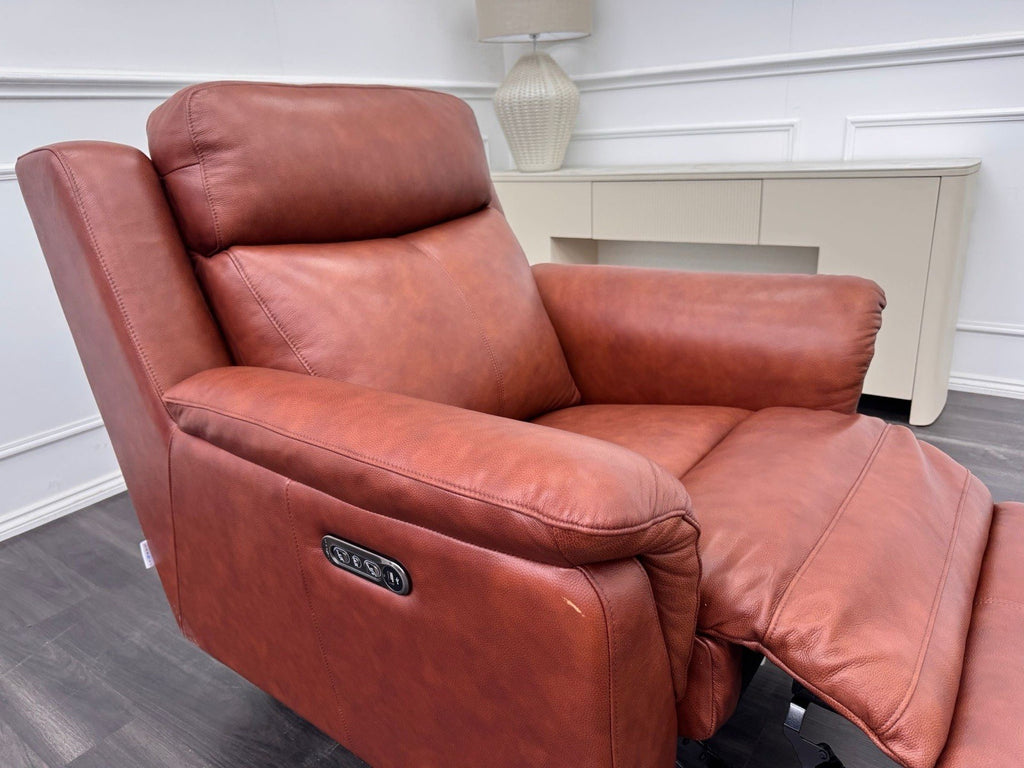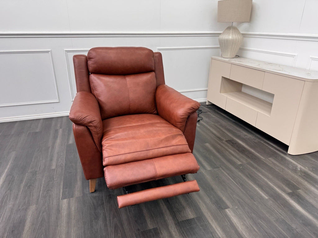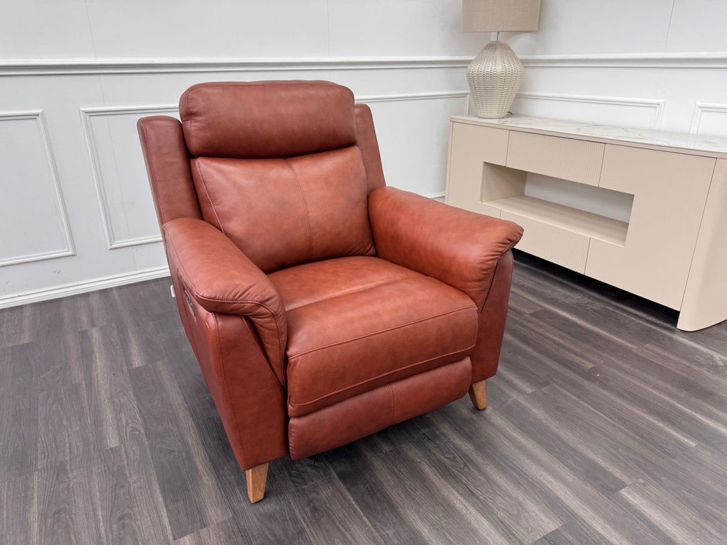 LA Z BOY Kenzie Power Recliner Armchair Brown Leather + Headrest