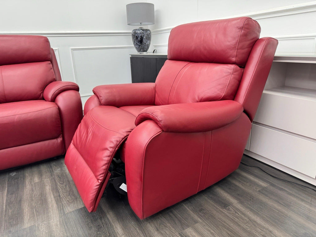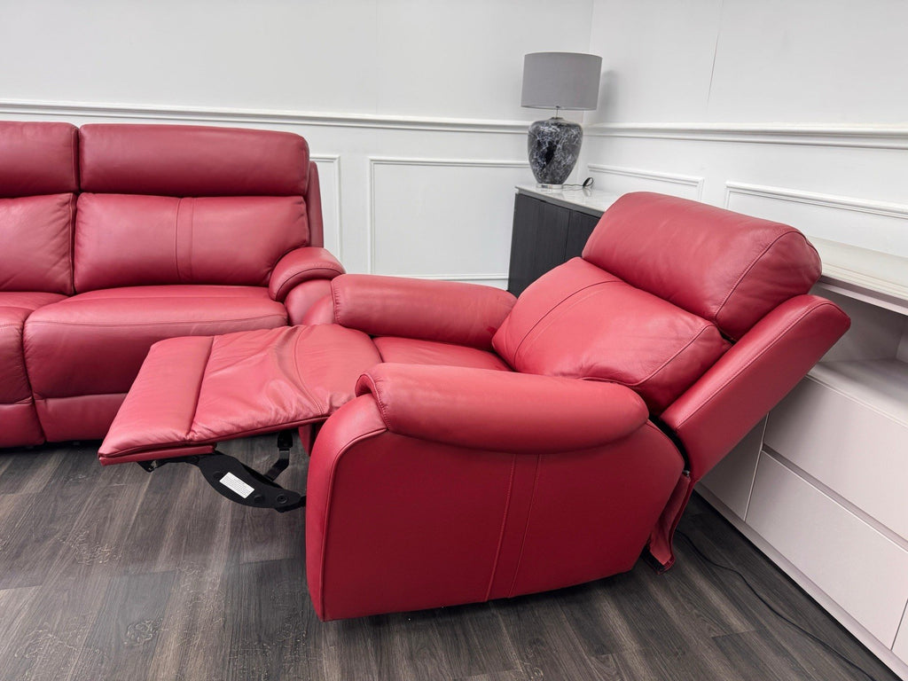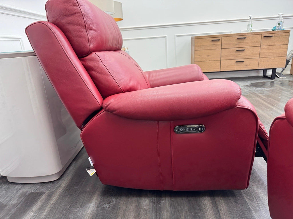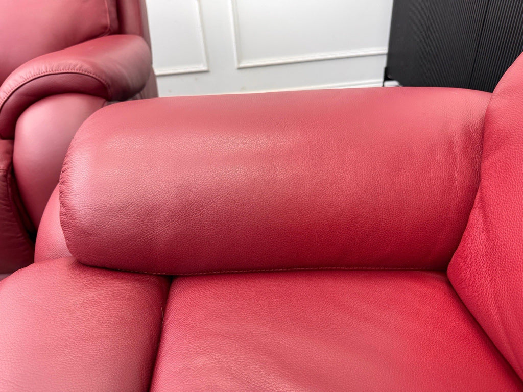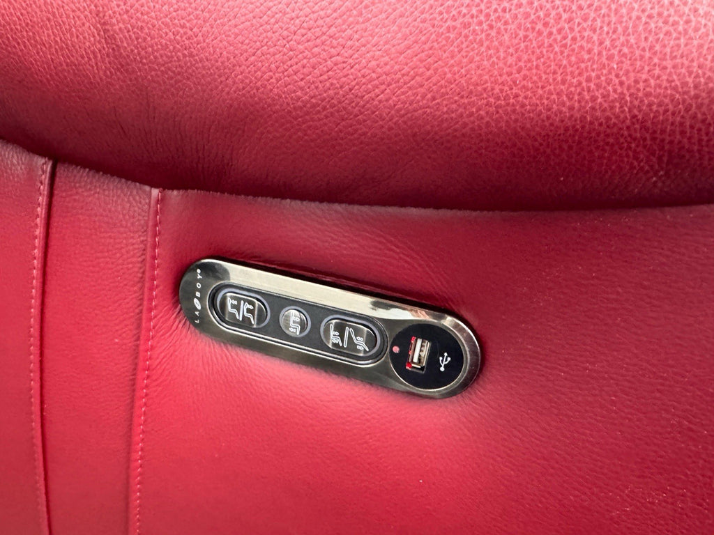 LA Z BOY Winchester Power Recliner 3 Seater + Armchair Sofa Set In Red Leather