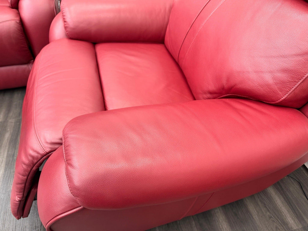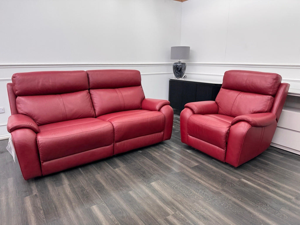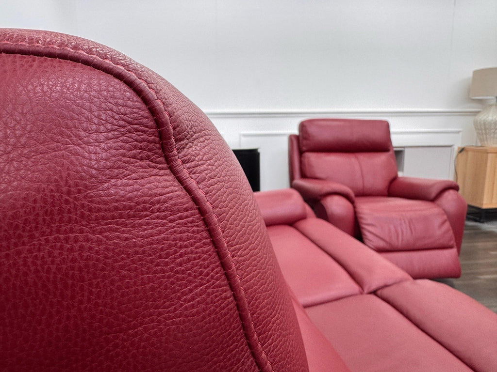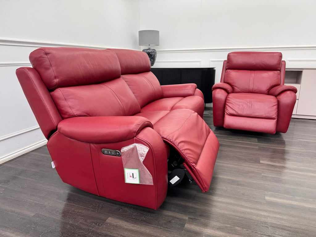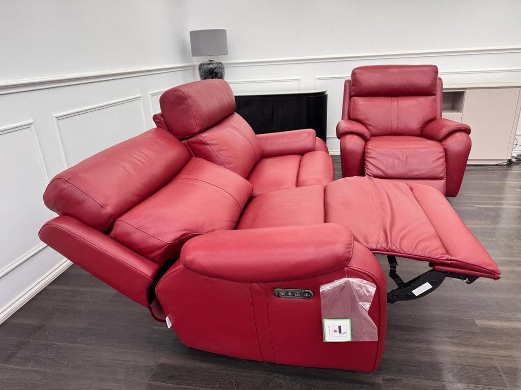LA Z BOY Winchester Power Recliner 3 Seater + Armchair Sofa Set In Red Leather