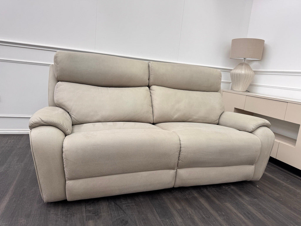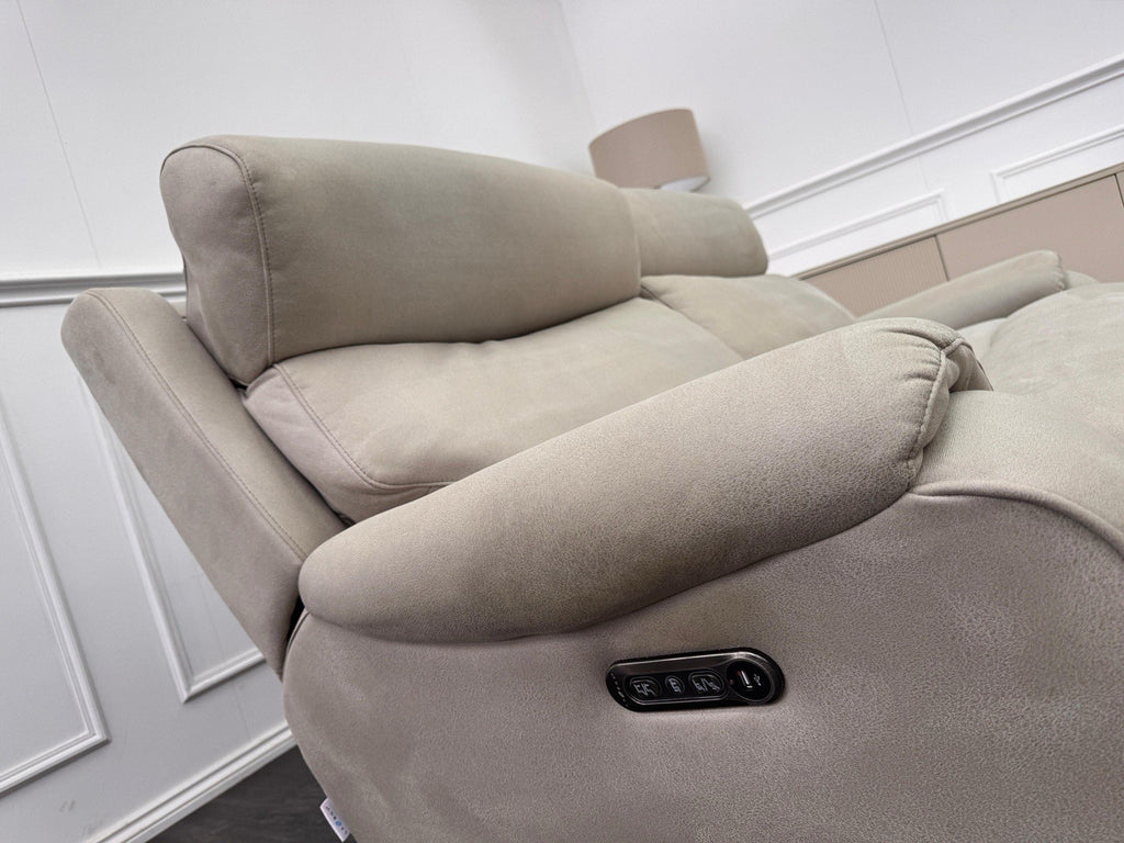LA Z BOY Winchester Power Recliner 3 Seater Sofa In Beige Fabric Power Headrest