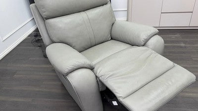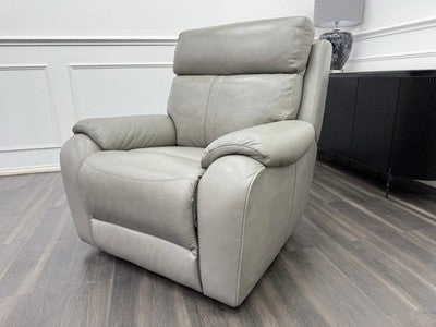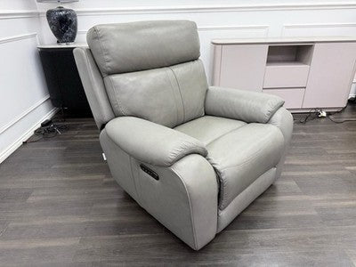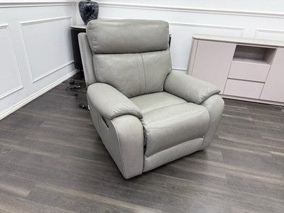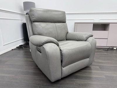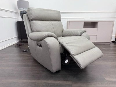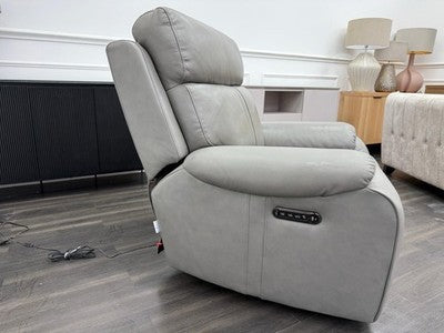 LA Z BOY Winchester Power Recliner Armchair In Grey Leather Headrest + Lumber