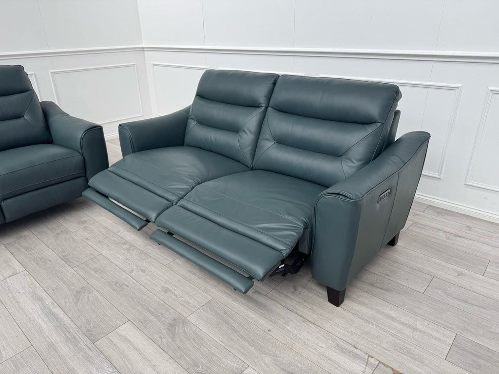 LAZYBOY MONZA STATIC 2 + 3 SEATER POWER RECLINER SOFA SET IN PETROL LEATHER