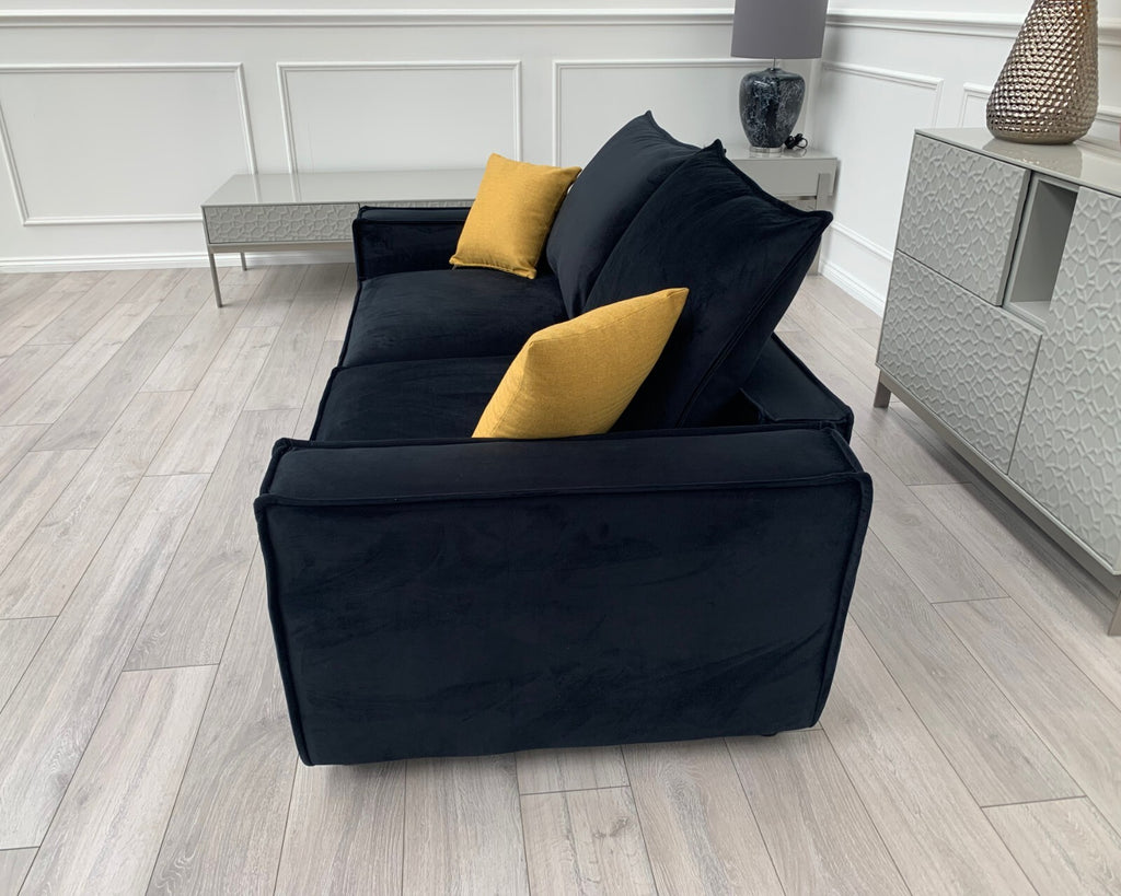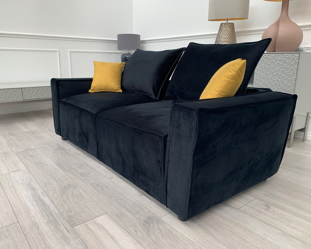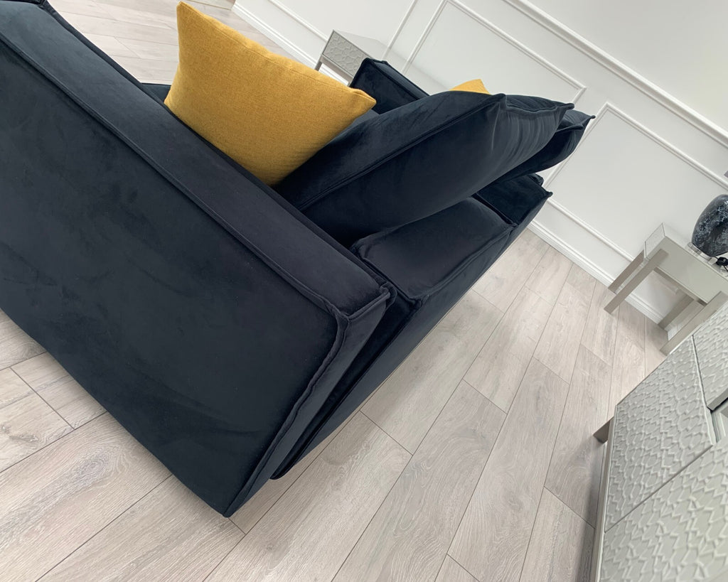 The Santorini Range elegantly designed with luxuriously soft velvet. Made with a large seating cushion to maximise on comfort. The perfect combination when searching for new sofas. Make a statement in your home with this angelic range.