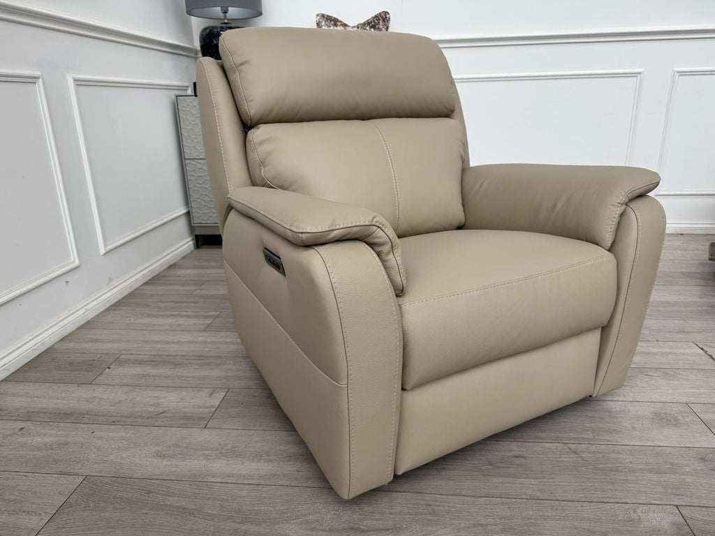 Nicoletti Lucano Beige/Taupe Leather Power Recliner Armchair