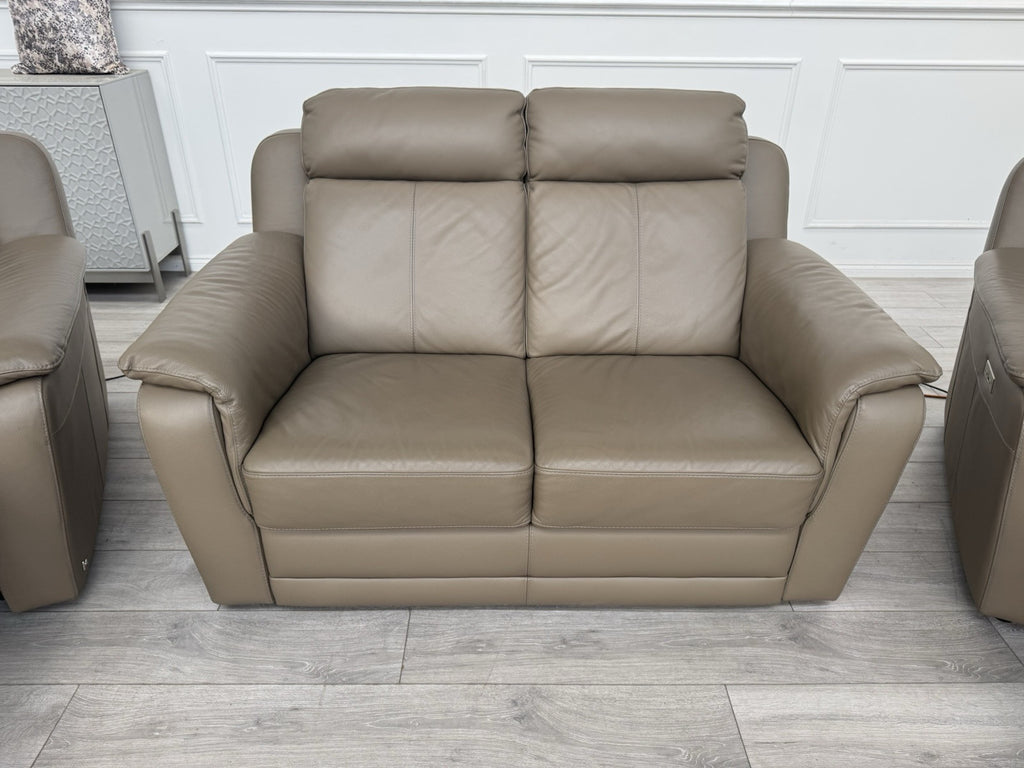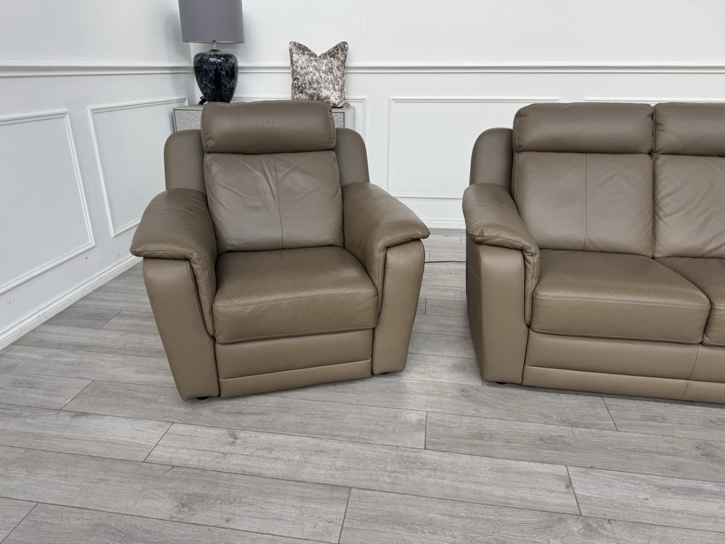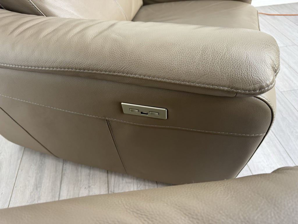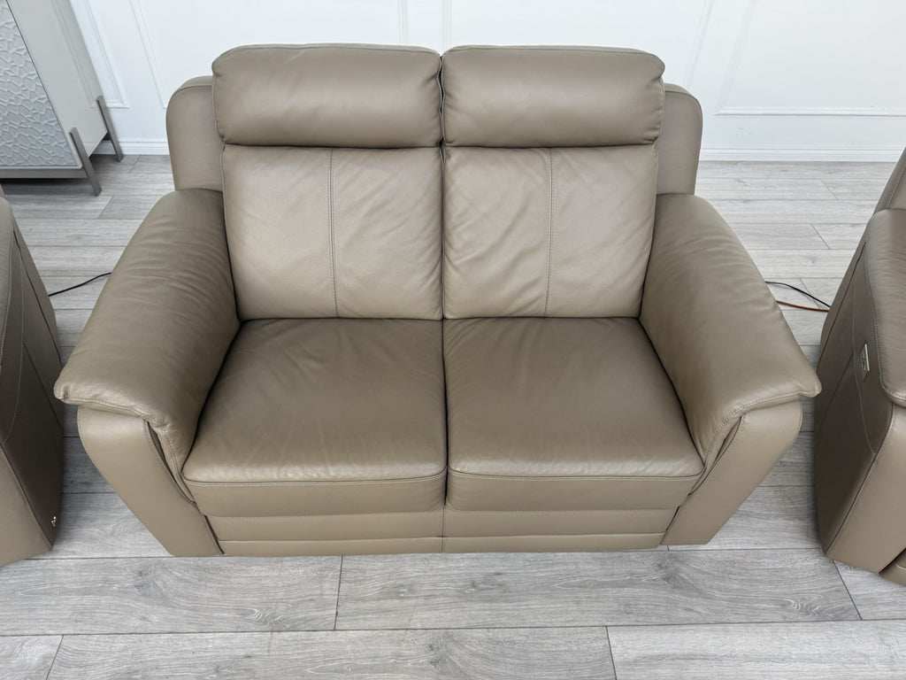 Nicoletti Lucano Dark Taupe 2 Seater Leather Sofa Set 2x Power Recliner Armchair