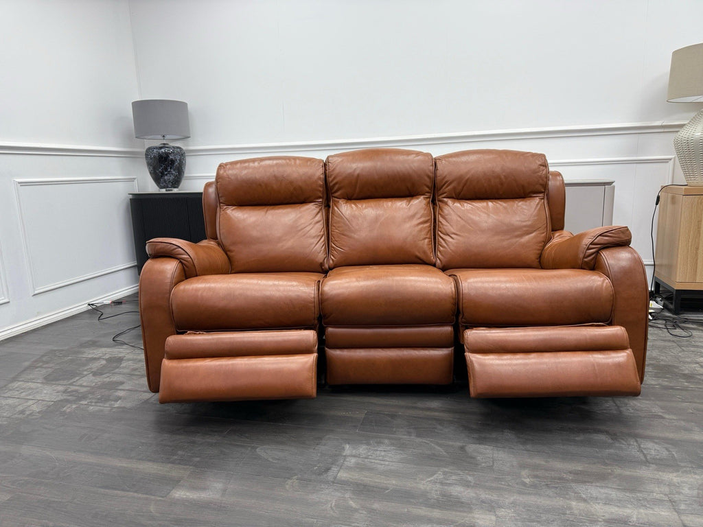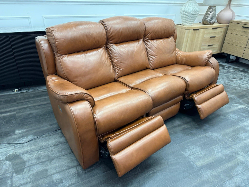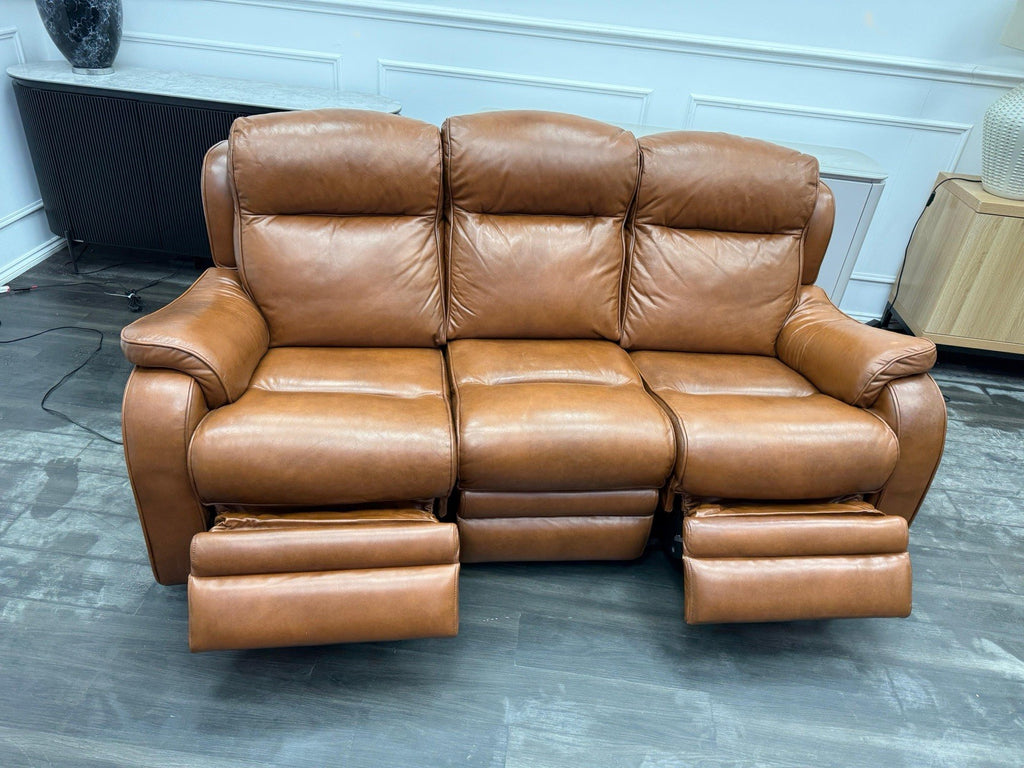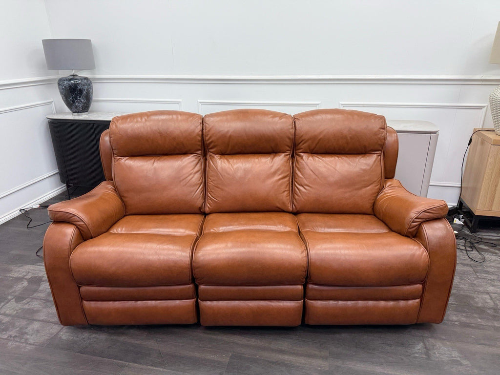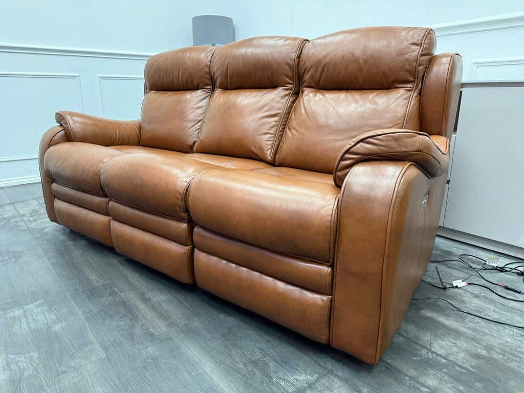 Parker Knoll Boston Brown Leather Power Recliner 3 Seater Sofa