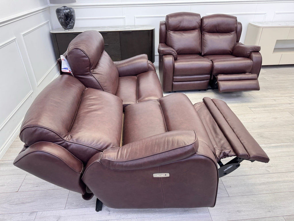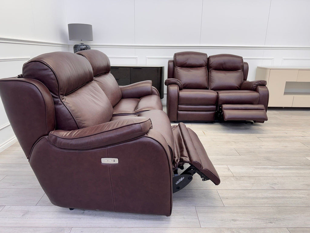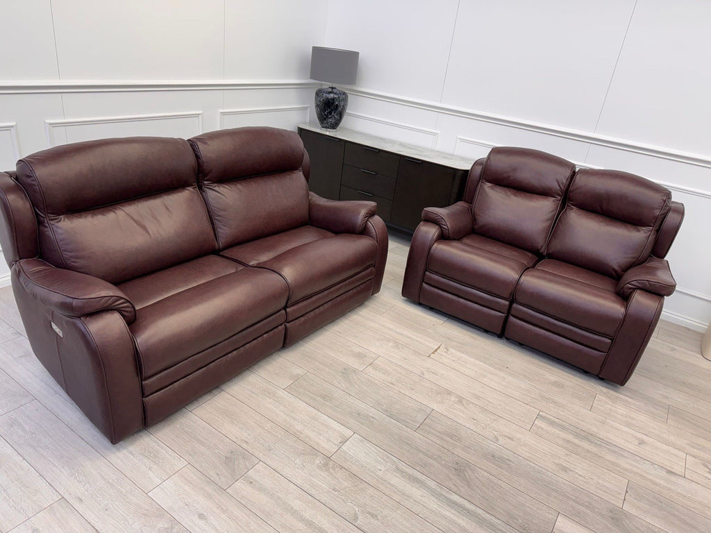 Parker Knoll Boston Burgundy Leather Power Recliner 3+2 Seater Sofa RRP £4099