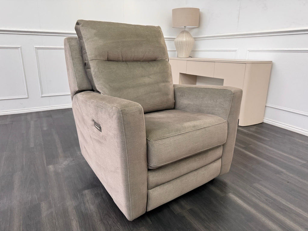 Parker Knoll CHICAGO Power Recliner Olive Fabric Armchair & Headrest & Lumbar