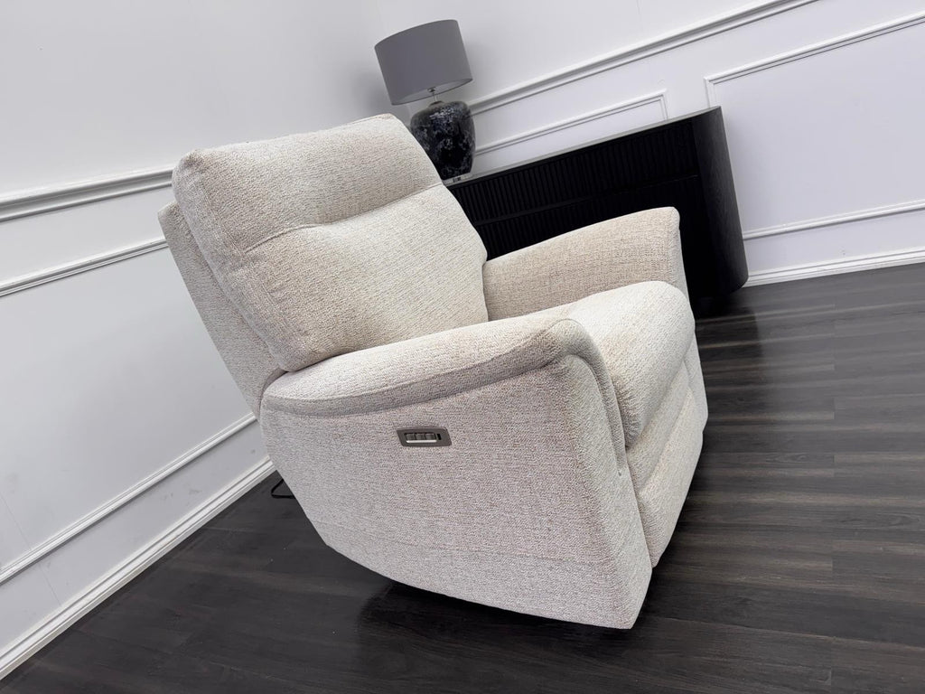 Parker Knoll Hudson 23 Beige Fabric Armchair Power Recliner & Headrest & Lumbar