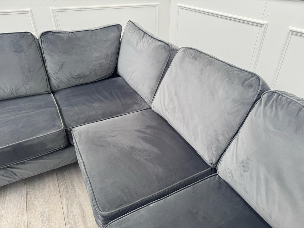 Sofology Canterbury Grey Fabric Corner Sofa Full Back Cushions
