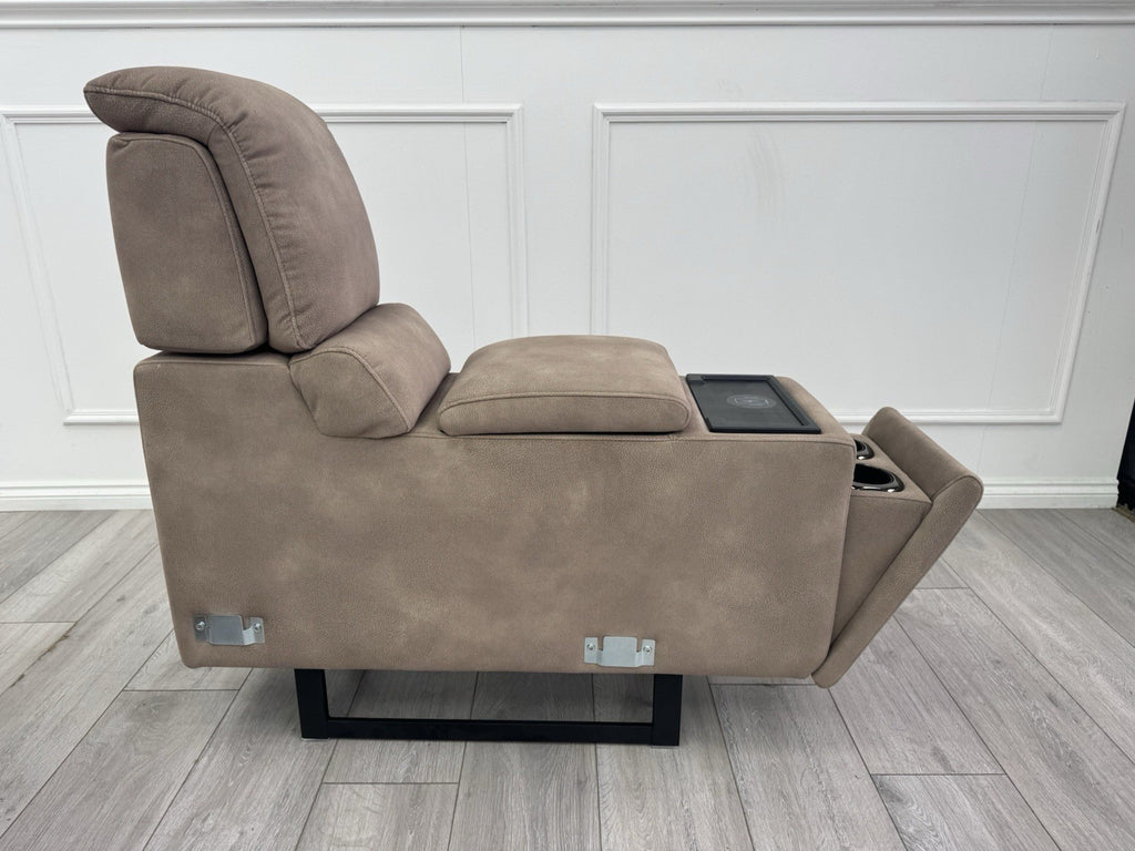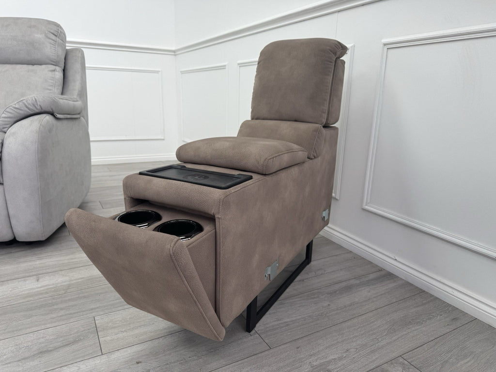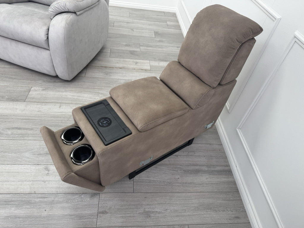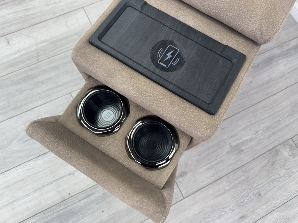 Sofology Illinois Console Mottled Fabric Latte Cup Holders Wireless Charging