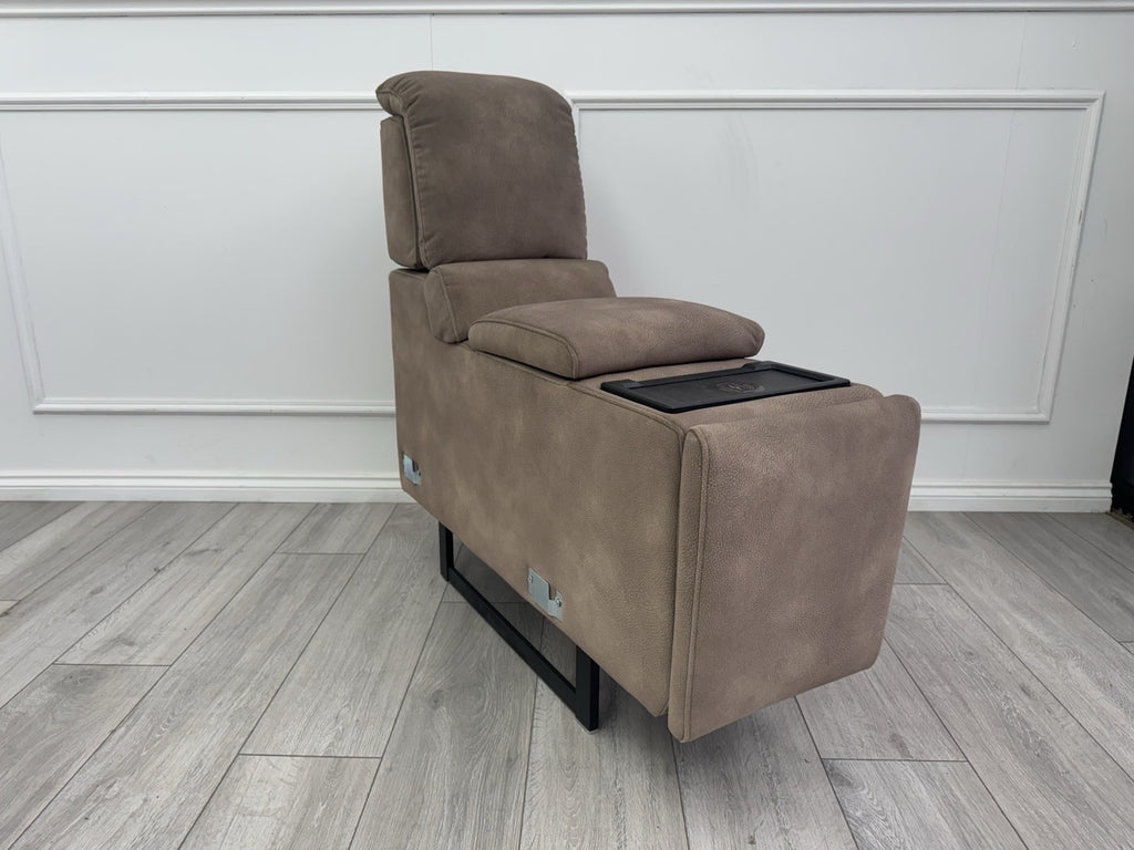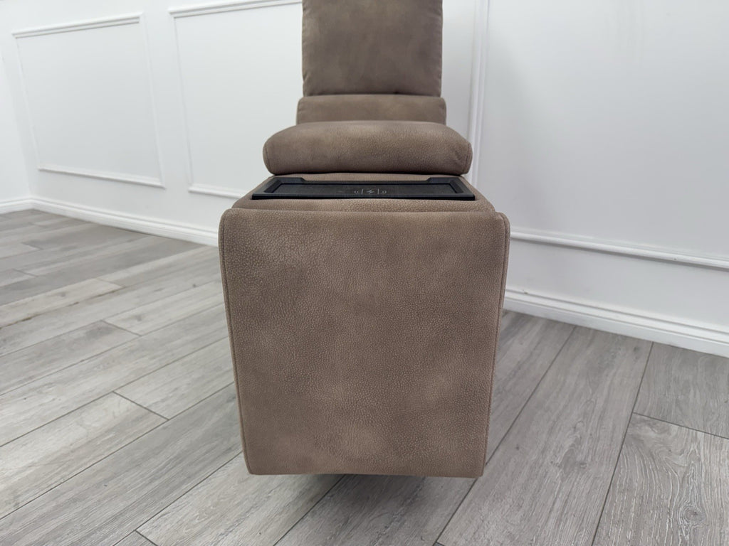 Upgrade your living space with the Sofology Illinois Console, a luxurious addition that combines functionality with style. The mottled latte velvet upholstery brings a touch of elegance to any room, while the modular design ensures it's a perfect fit for your seating needs. With convenient features like a cup holder and wireless charging, this piece isn't just a pretty face—it's designed to enhance your daily life.