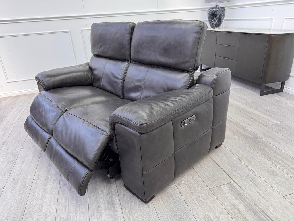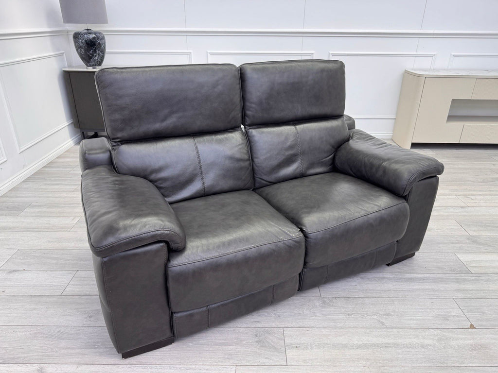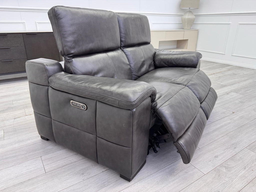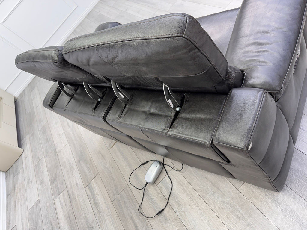 Sofology Laurance 2 Seater Sofa Power Recliner + Headrests Black Coffee Leather