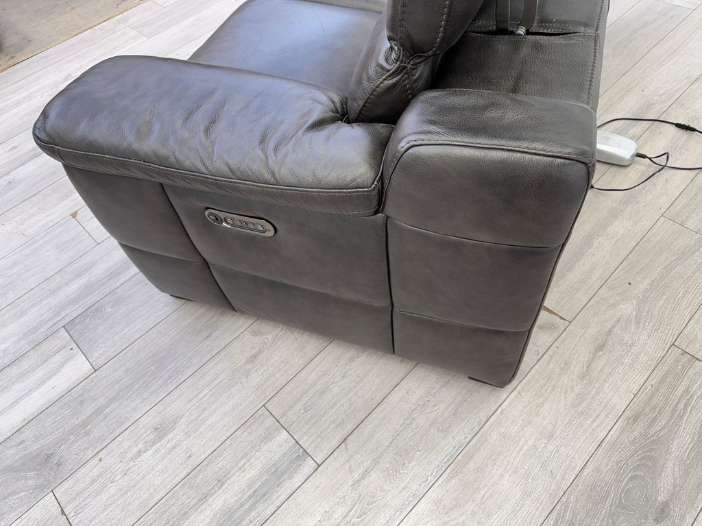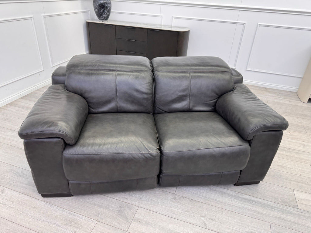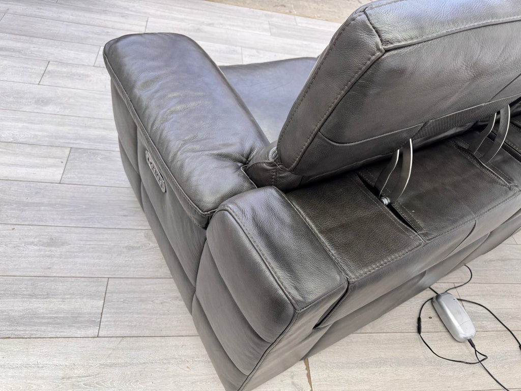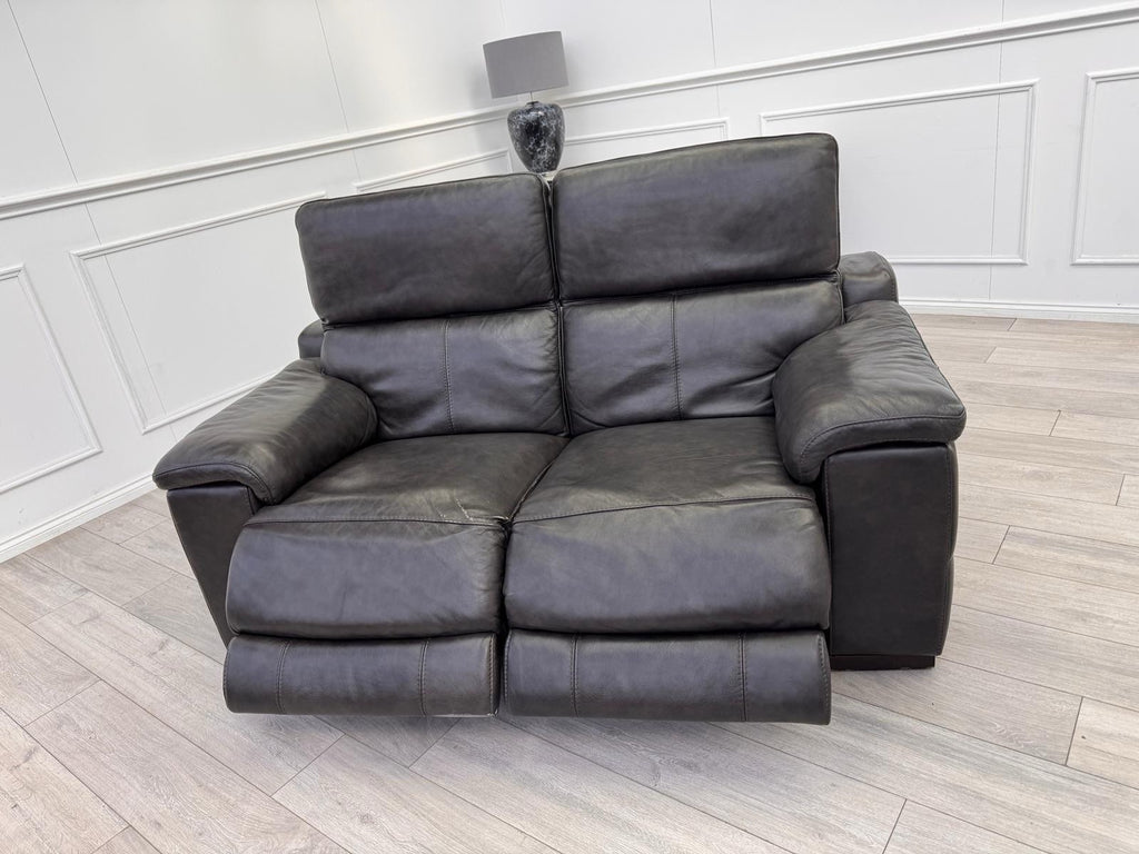 Sofology Laurance 2 Seater Sofa Power Recliner + Headrests Black Coffee Leather