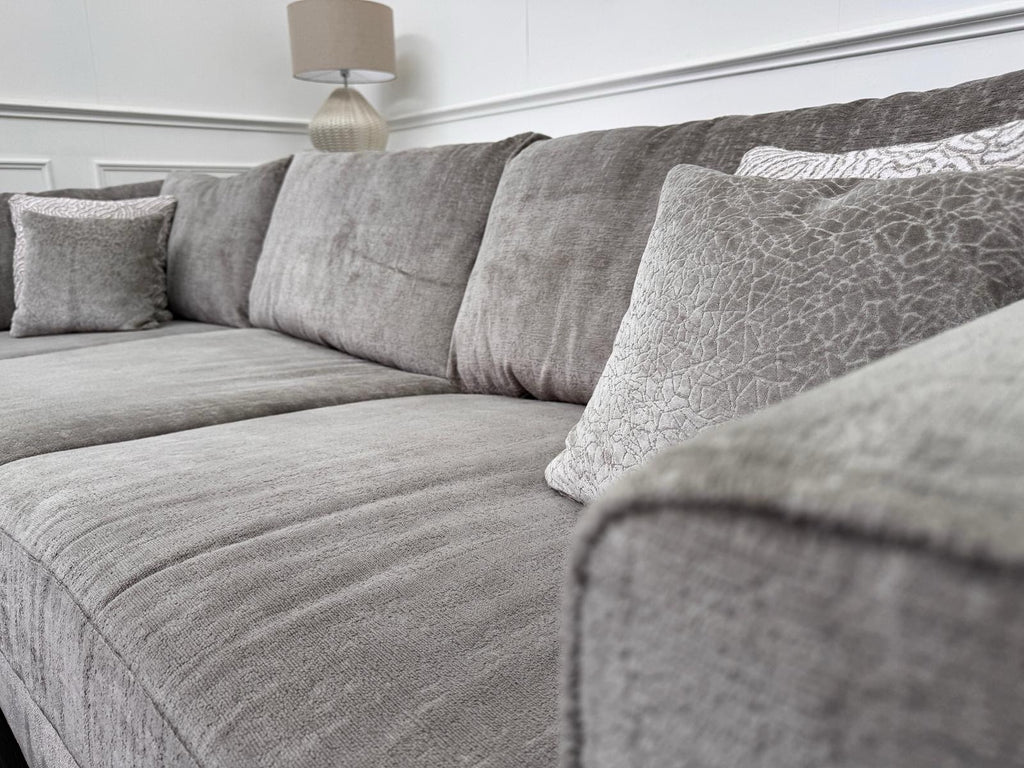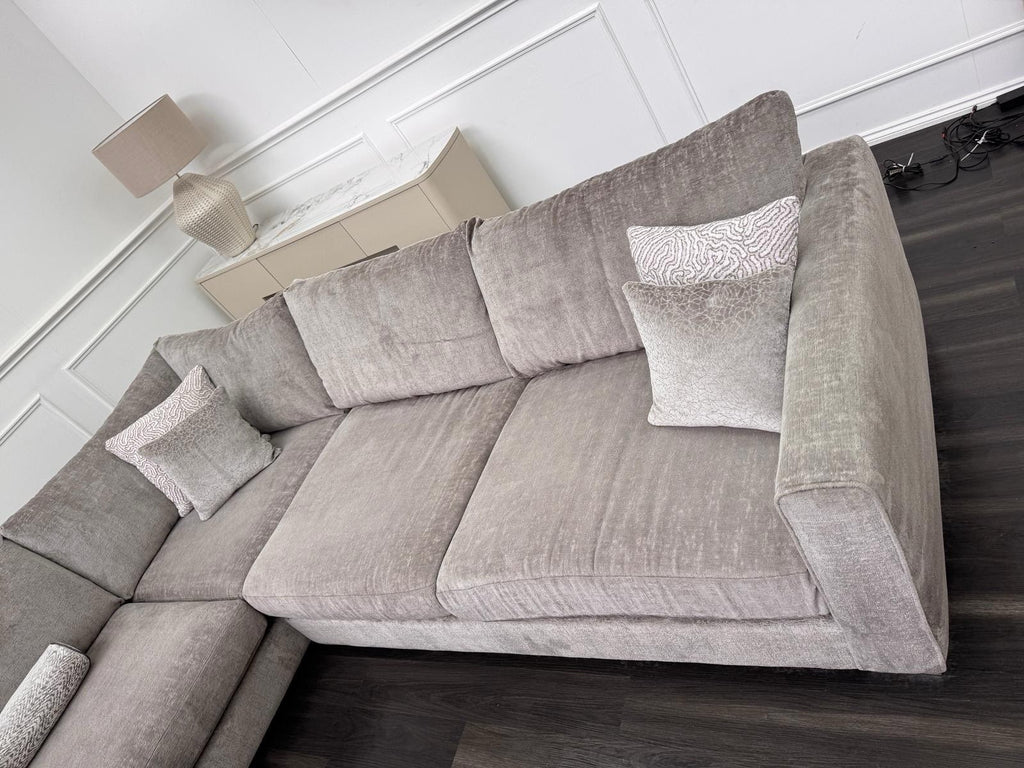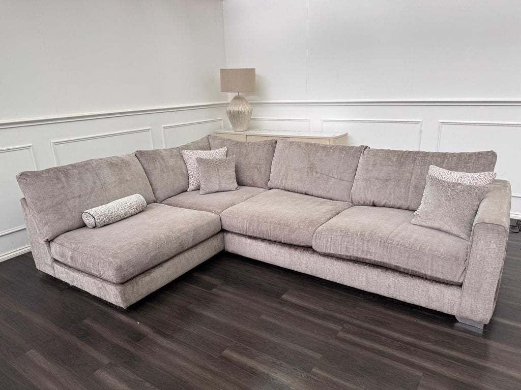 Sofology Majestica Truffle Fabric Terminal End Chaise Corner Sofa Full Back