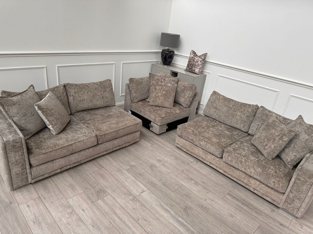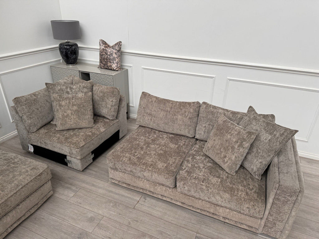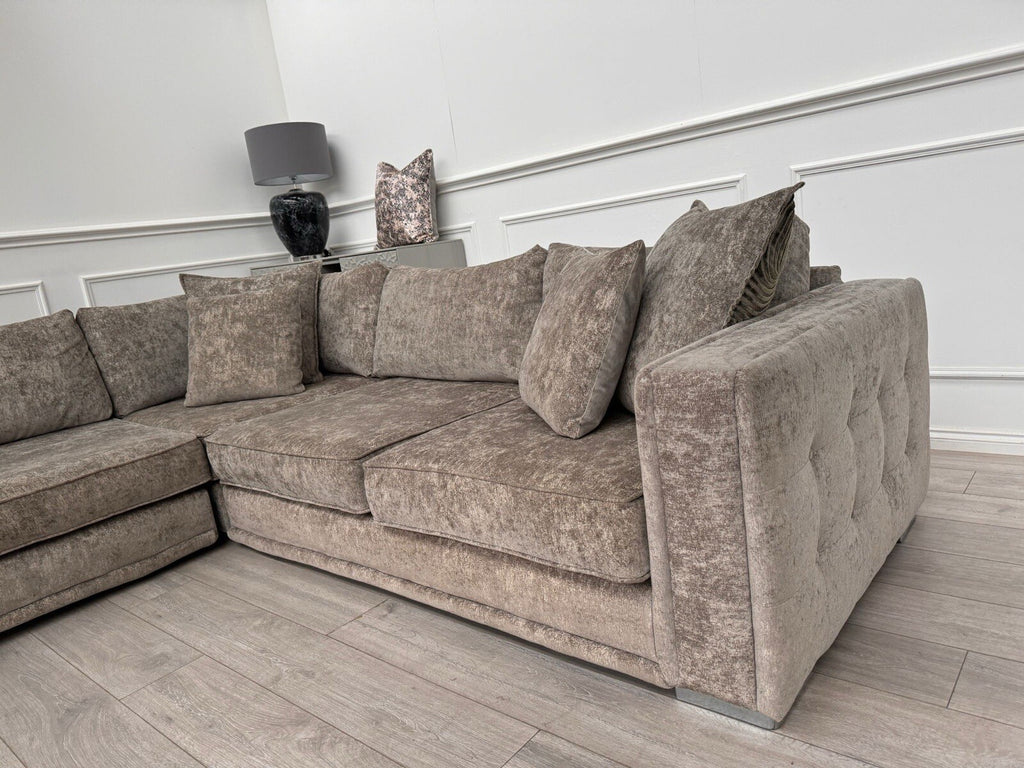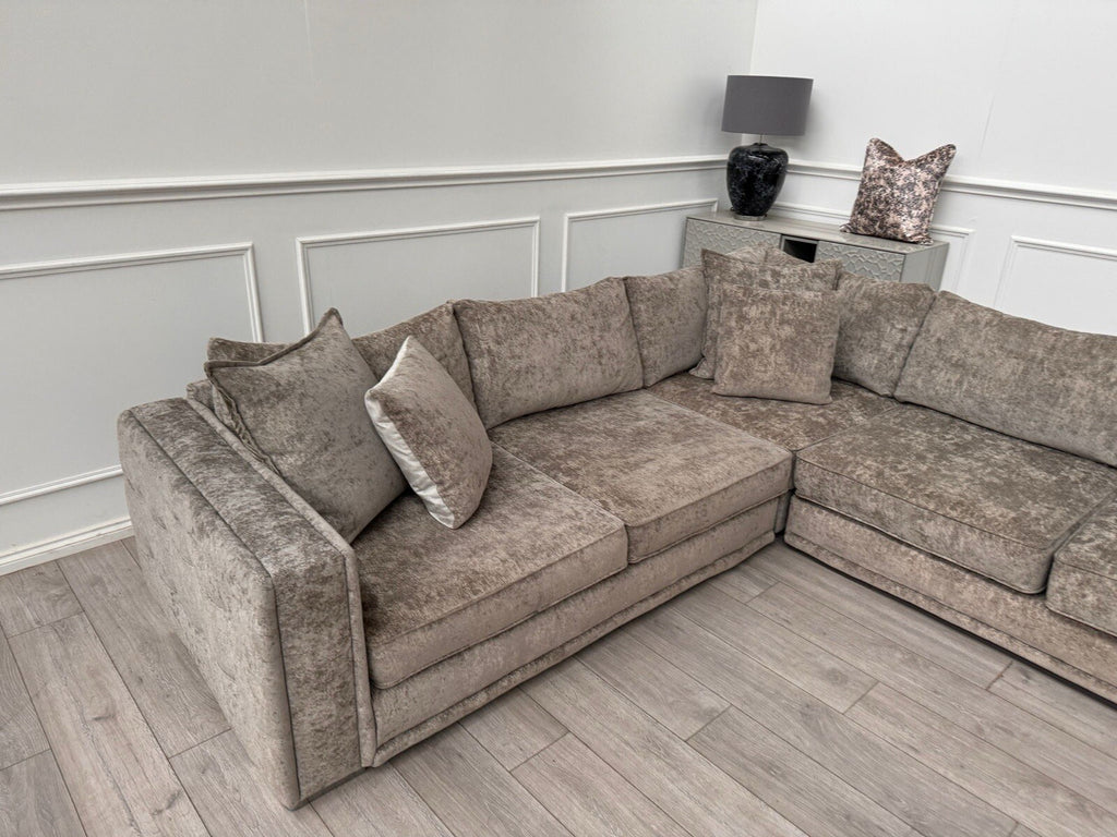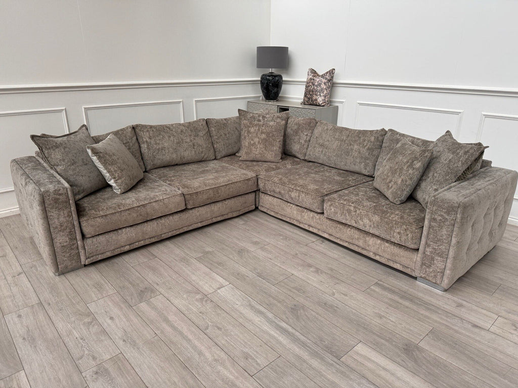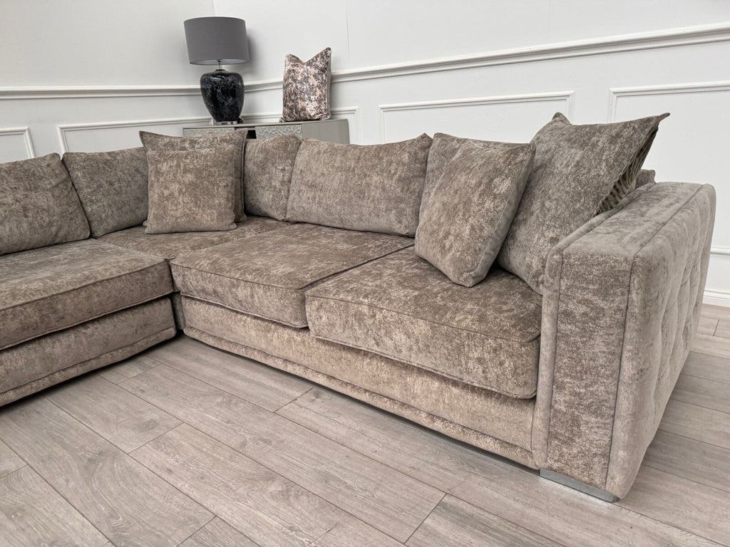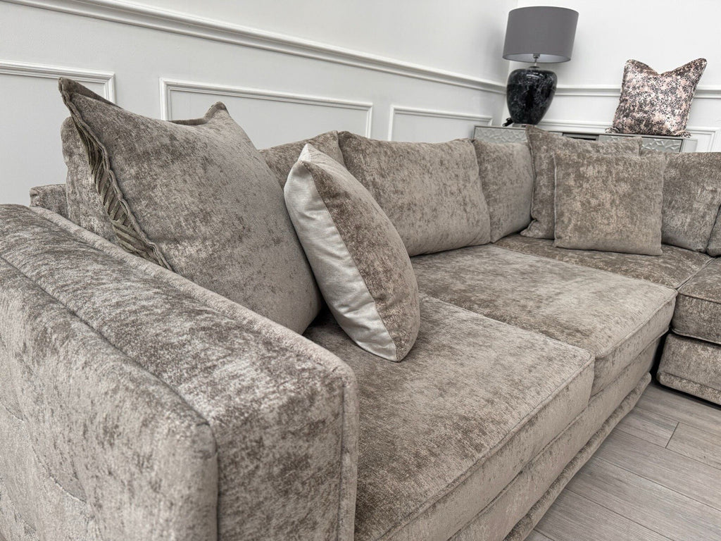 Sofology Midas Grey Fabric Corner Sofa Full Back With Scatter Cushions