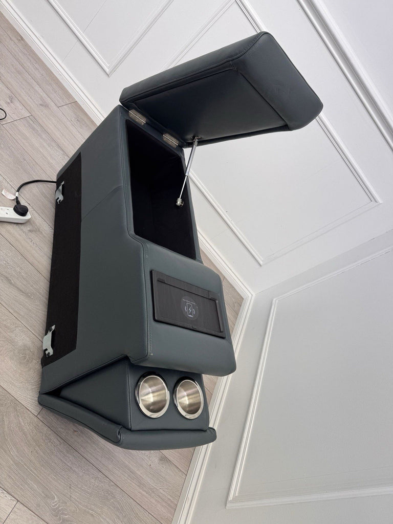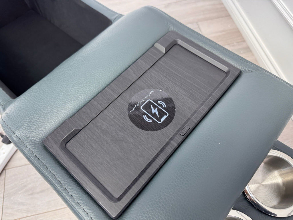 Sofology Plaza Console Peacock Leather Cup Holders Wireless Charging Socket