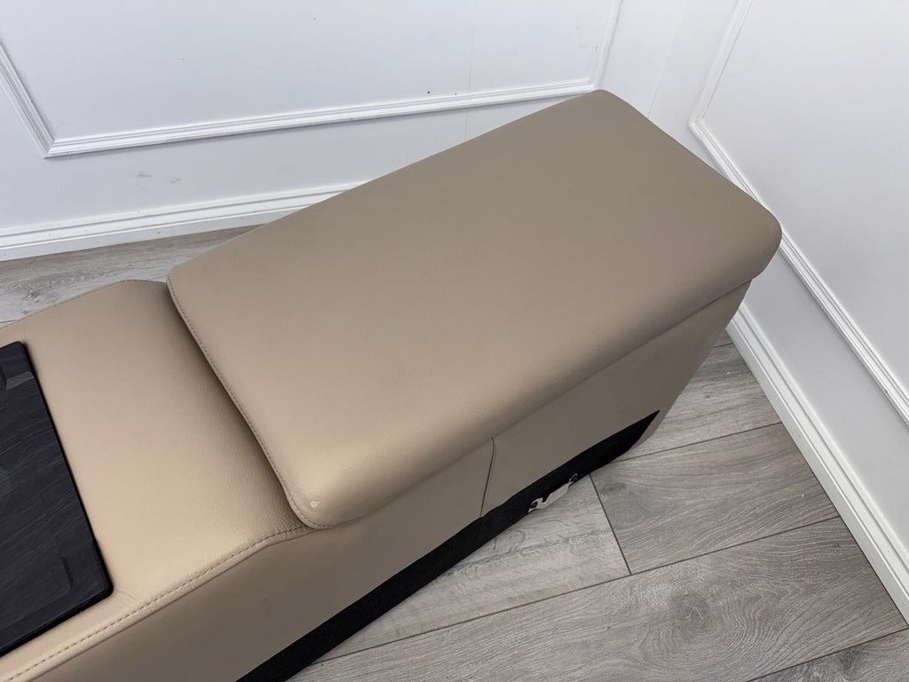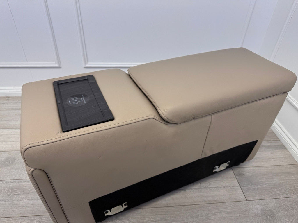Sofology Plaza Console Stone Beige Leather Cup Holders Wireless Charging Socket
