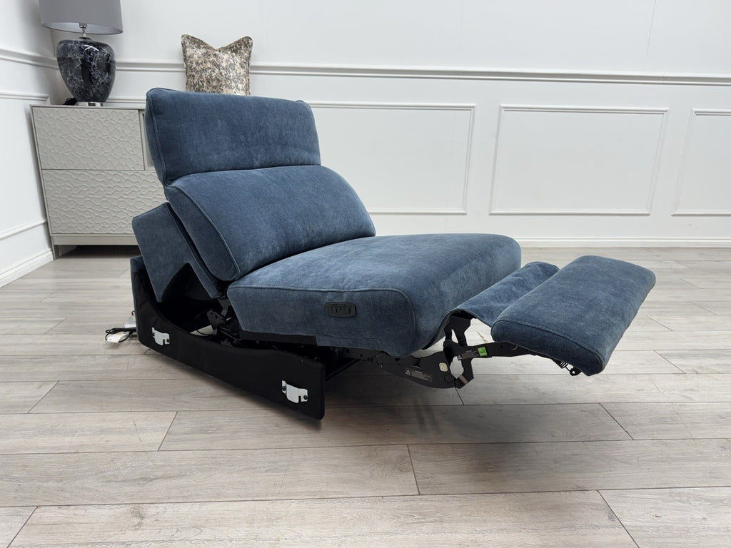 Sofology Plaza Middle Section Power Recliner & Headrest Chenille Denim Blue