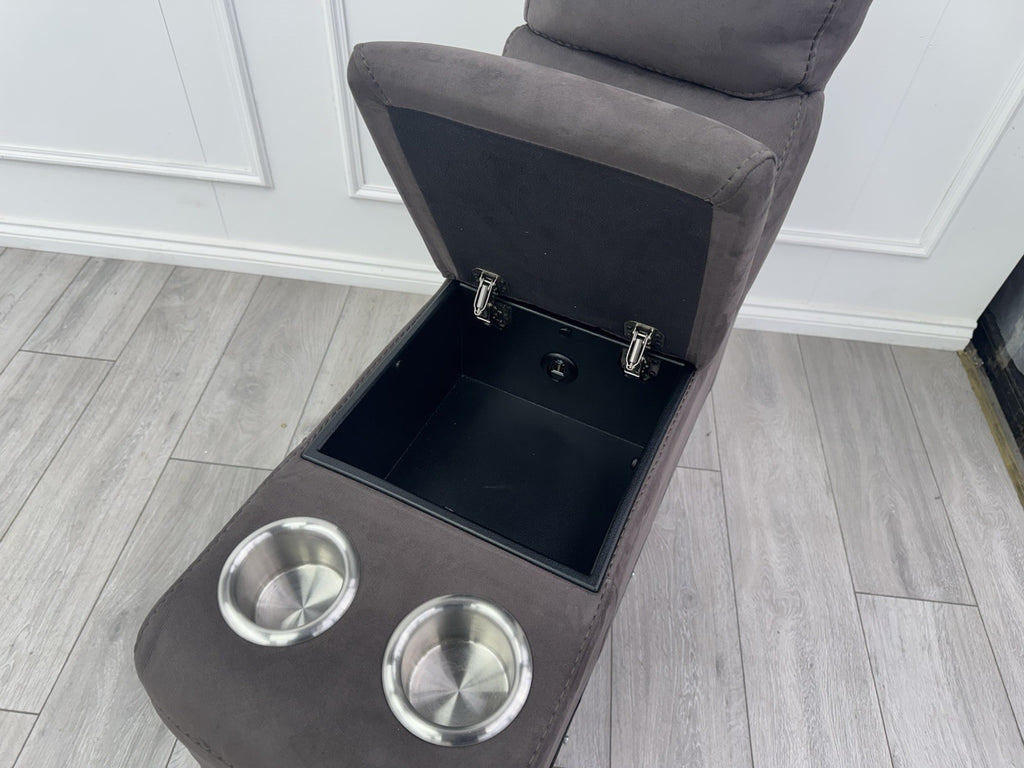 Sofology Radleigh Console Chocolate Brown Textured Fabric Cup Holders Storage