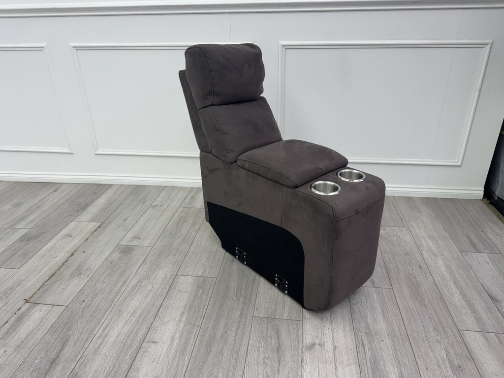 Introducing the Sofology Radleigh Console in chocolate brown textured fabric, a stylish and functional addition to your living space. This modular piece features a storage compartment and a cup holder, making it perfect for keeping your area tidy and your drink within reach. The velvet upholstery adds a touch of luxury to the design, while the brown colour complements any home décor.